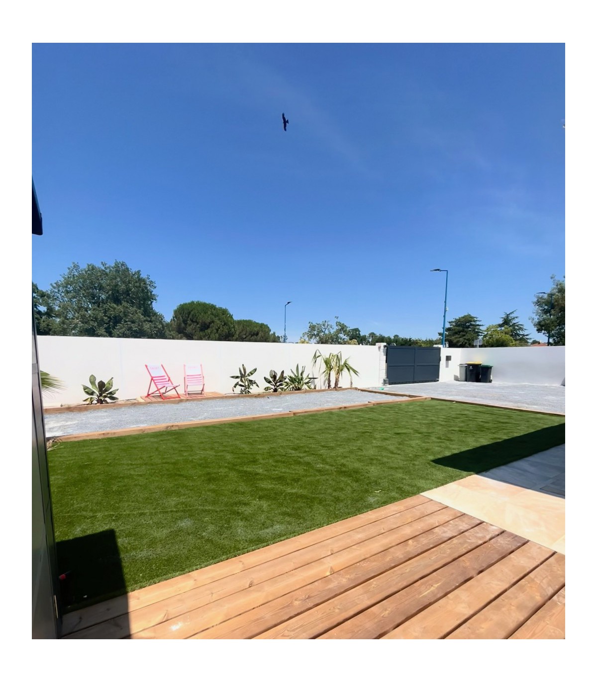 Proposé en rouleau de 4 m x 25 m, ce gazon synthétique grand format est parfaitement adapté aux projets d’aménagement de grande ampleur : jardins résidentiels, hôtels, espaces publics ou zones événementielles.